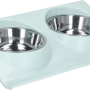 Springos Podwójna miska metalowa z podstawką dla psa niebieska (PA0217)