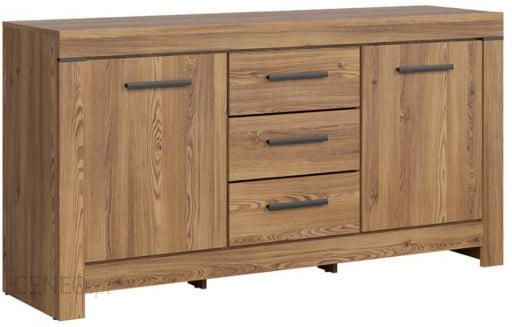 Szukasz komody, będącej połączeniem klasyki i nowoczesności? Trafiłeś idealnie! Komoda Balin marki Black Red White łączy w sobie prostą, solidną konstrukcję z eleganckim, gustownym wybarwieniem. Bryła cudownie komponuje się na tle zarówno ciemnych jak i nieco jaśniejszych przestrzeni. Mebel składa się z 2 ofrontowanych półek na bokach oraz 3 szuflad pośrodku. Dzięki wyposażeniu ich w porządne prowadnice i zawiasy z systemem cichego domyku zapomnisz co to trzask zamykanych szafek. Długi blat idealnie zaprezentuje ramki ze zdjęciami, stanowiąc tym samym dodatkową dekoracje pomieszczenia. Fronty uchylane są przy pomocy poręcznych uchwytów, które łatwo złapać. Cechy charakterystyczne w środku, za każdymi drzwiczkami, po jednej półce podłużne uchwyty Wykonanie korpus: płyta wiórowa, listwa MDF, folia finish fronty: płyta wiórowa, folia finish prowadnice i zawiasy: system cichego domyku Wybarwienie modrzew sibiu złoty dąb monastery / dąb czarny dąb monastery