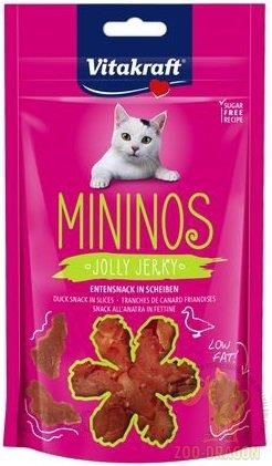 Vitakraft Mininos Jolly JerkyPrzekąska, której nie oprze się żaden kot. Niesamowite plasterki z kaczki, z dużą zawartością mięsa aby przysmak był jeszcze bardziej szlachetny. Zaspokojenie wyrafinowanych podniebień to nie jedyna zaleta przekąski, jest ona niskotłuszczowa, a receptura nie zawiera cukru i zbóż.Przysmak z kaczki dla kotów.Cieniutkie plasterki.Wysoka zawartość mięsa – powyżej 80%.Niska zawartość tłuszczu.Bez dodatku zbóż.Receptura nie zawierająca cukru.Nie zawiera barwników.Nie zawiera wzmacniaczy smaku.Opakowanie z zamknięciem strunowym pozwala na dłuższe utrzymanie świeżości produktu.Skład: mięso i produkty pochodzenia zwierzęcego (kaczka 88,2%), produkty pochodzenia roślinnego, ryby i produkty rybne.Analiza: białko 43%, oleje i tłuszcze 4,5%, popiół surowy 5%, włókno surowe 0,5%, wilgotność 30%.Opakowanie: 40g….