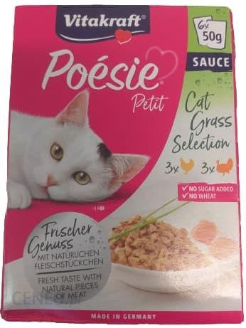 Zestaw 3 saszetek z kurczakiem i 3 saszetek z indykiem z dodatkiem kociej trawy
